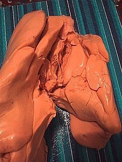 - d'abord il faut séparer les deux lobes du foie